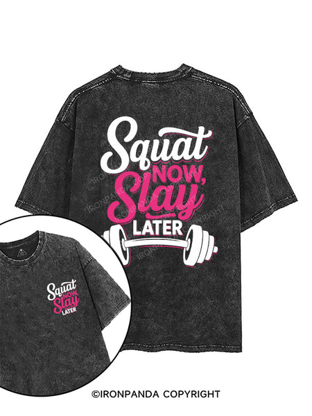 SQUAT NOW, SLAY LATER printed Gym Shirt