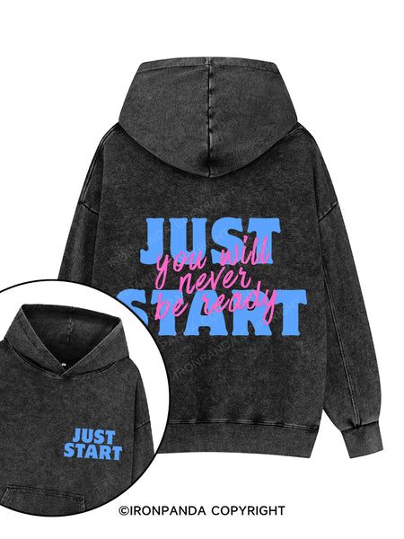 YOU WILL NEVER BE READY JUST START Printed Washed Gym Hoodie