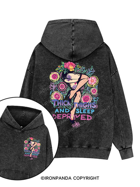 THICK THIGHS AND SLEEP DEPRIVED Printed Washed Gym Hoodie