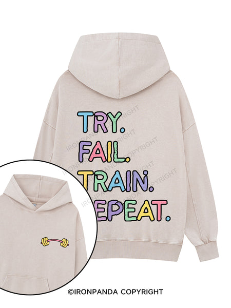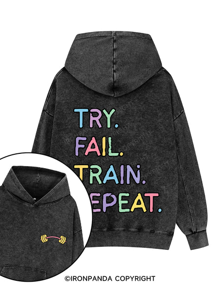 TRY FAIL TRAIN REPEAT Printed Washed Gym Hoodie