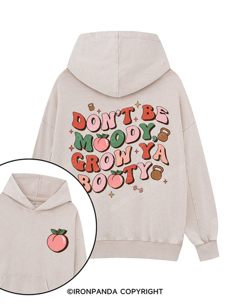 DON’T BE MOODY GROW YA BOOTY Printed Washed Gym Hoodie