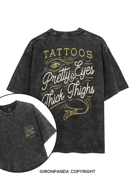 TATTOOS PRETTY EYES & THICK THIGHS printed Gym Shirt