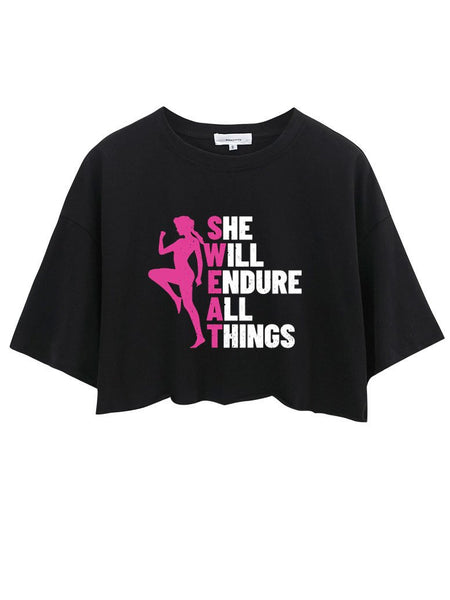 SHE WILL ENDURE ALL THINGS CROP TOPS