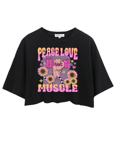 PEACE LOVE MUSCLE CROP TOPS