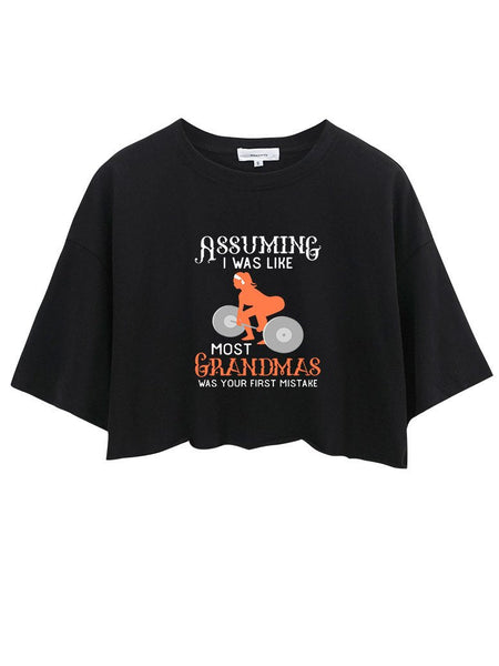 ASSUMING I WAS LIKE MOST GRANDMAS TRI ROCKER COTTON TANK Crop Tops