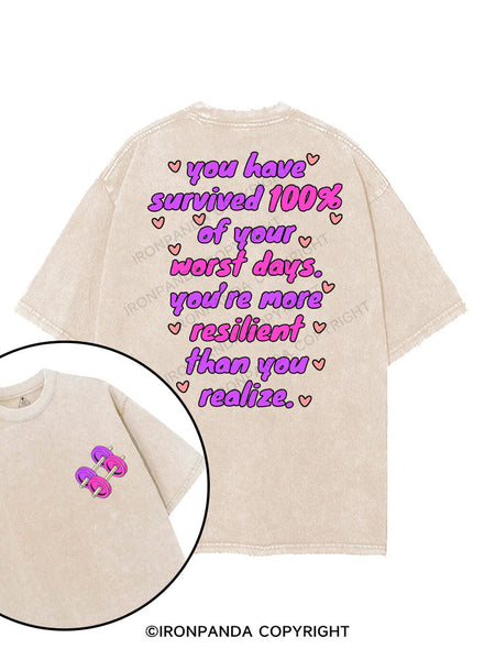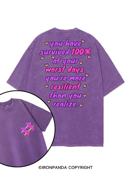 YOU HAVE SURVIVED 100% OF YOUR WORST DAYS printed Gym Shirt