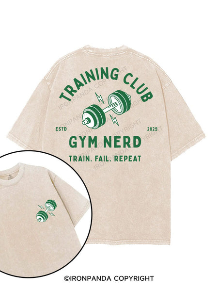 GYM NERD TRAINING CLUB TRAIN FAIL REPEAT printed Gym Shirt