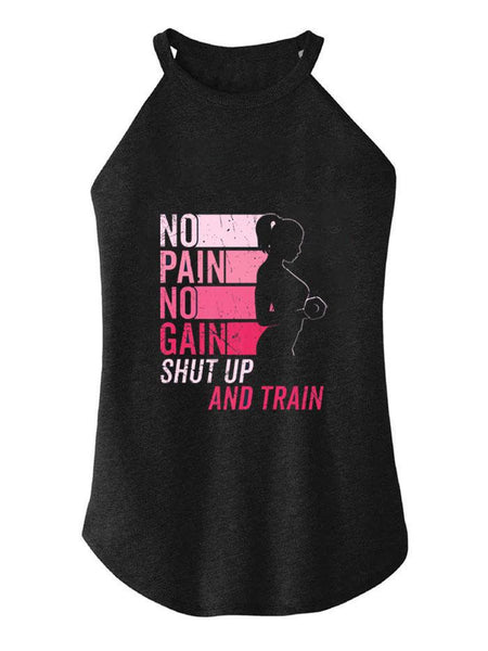 NO PAIN NO GAIN SHUT UP AND TRAIN ROCKER COTTON TANK