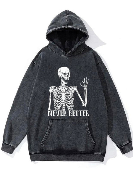 Never Better Skeleton WASHED GYM HOODIE