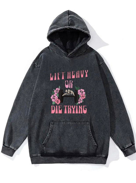 Lift heavy or die trying WASHED GYM HOODIE