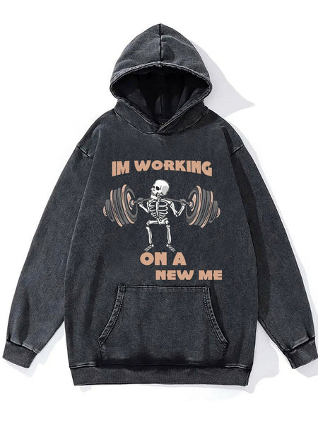 I'm Working On A New Me Washed Gym Hoodie