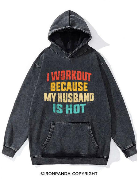 I WORK OUT BECAUSE MY HUSBAND IS HOT WASHED GYM HOODIE