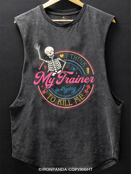 I THINK MY TRAINER IS TRYING TO KILL ME SCOOP BOTTOM COTTON TANK