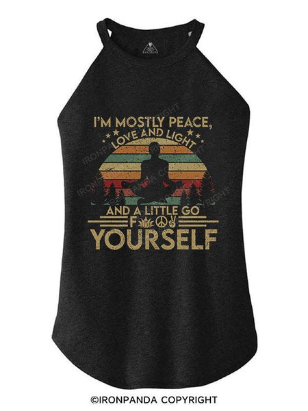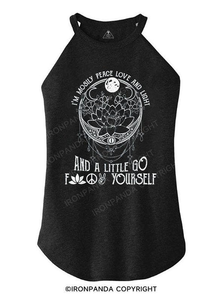 I'M MOSTLY PEACE LOVE AND LIGHT AND A LITTLE GO YOURSELF TRI ROCKER COTTON TANK