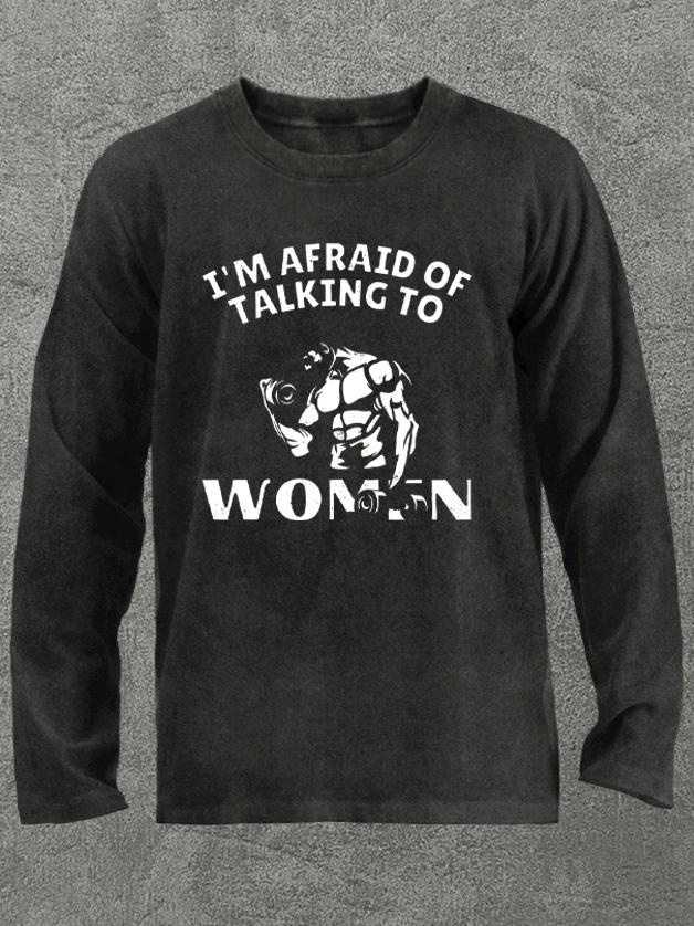 afraid of talking to women Washed Gym Long Sleeve Shirt