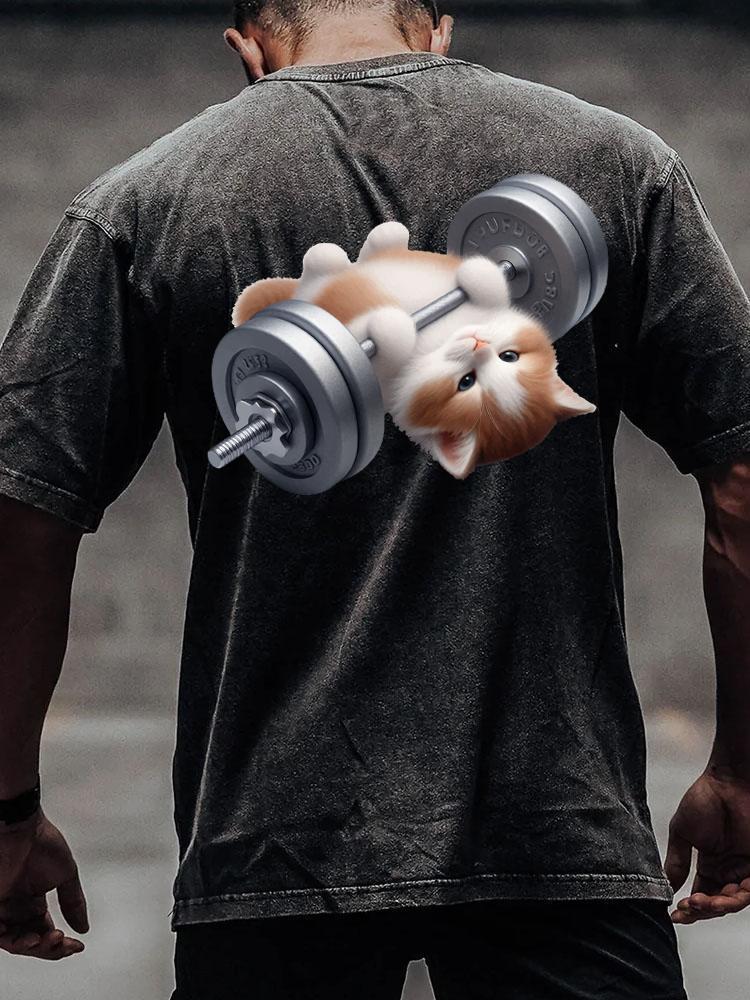 CAT UNDER THE BAR back printed Washed Gym Shirt