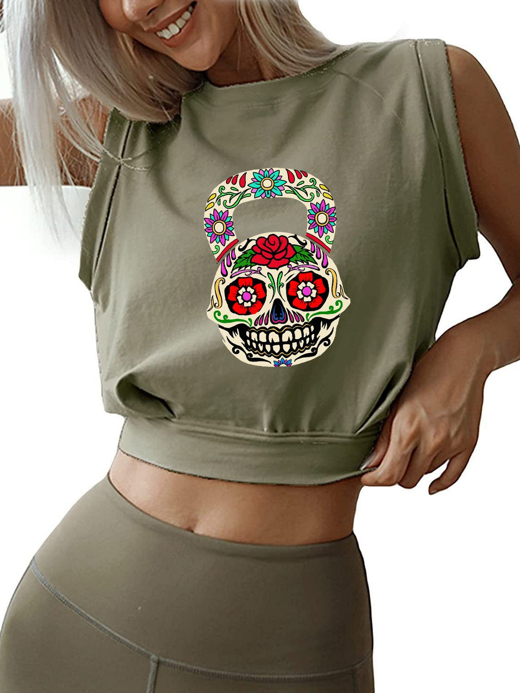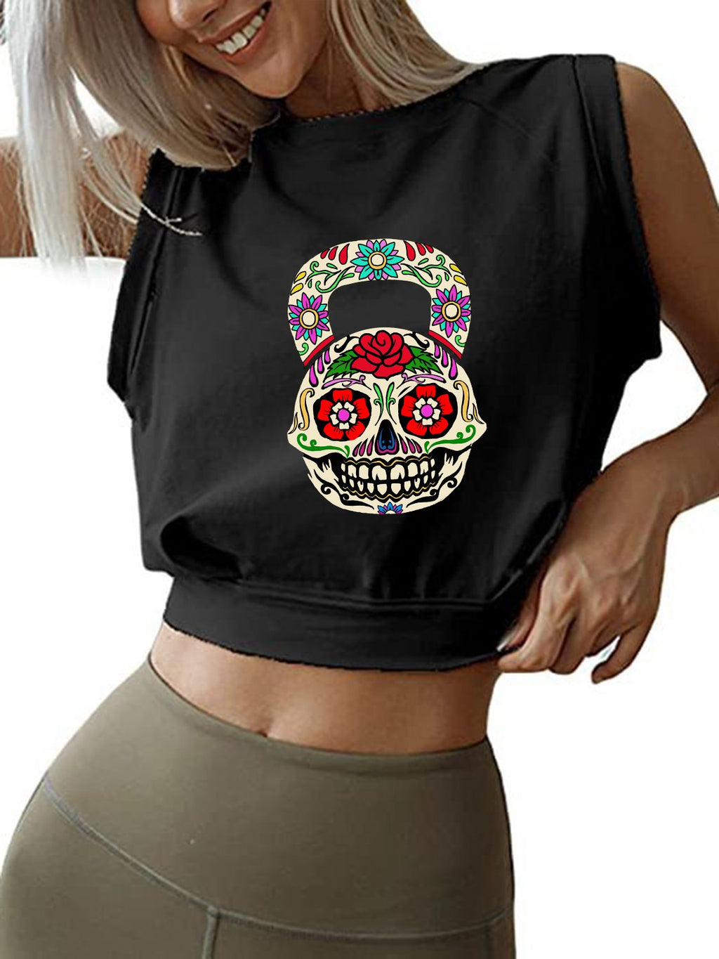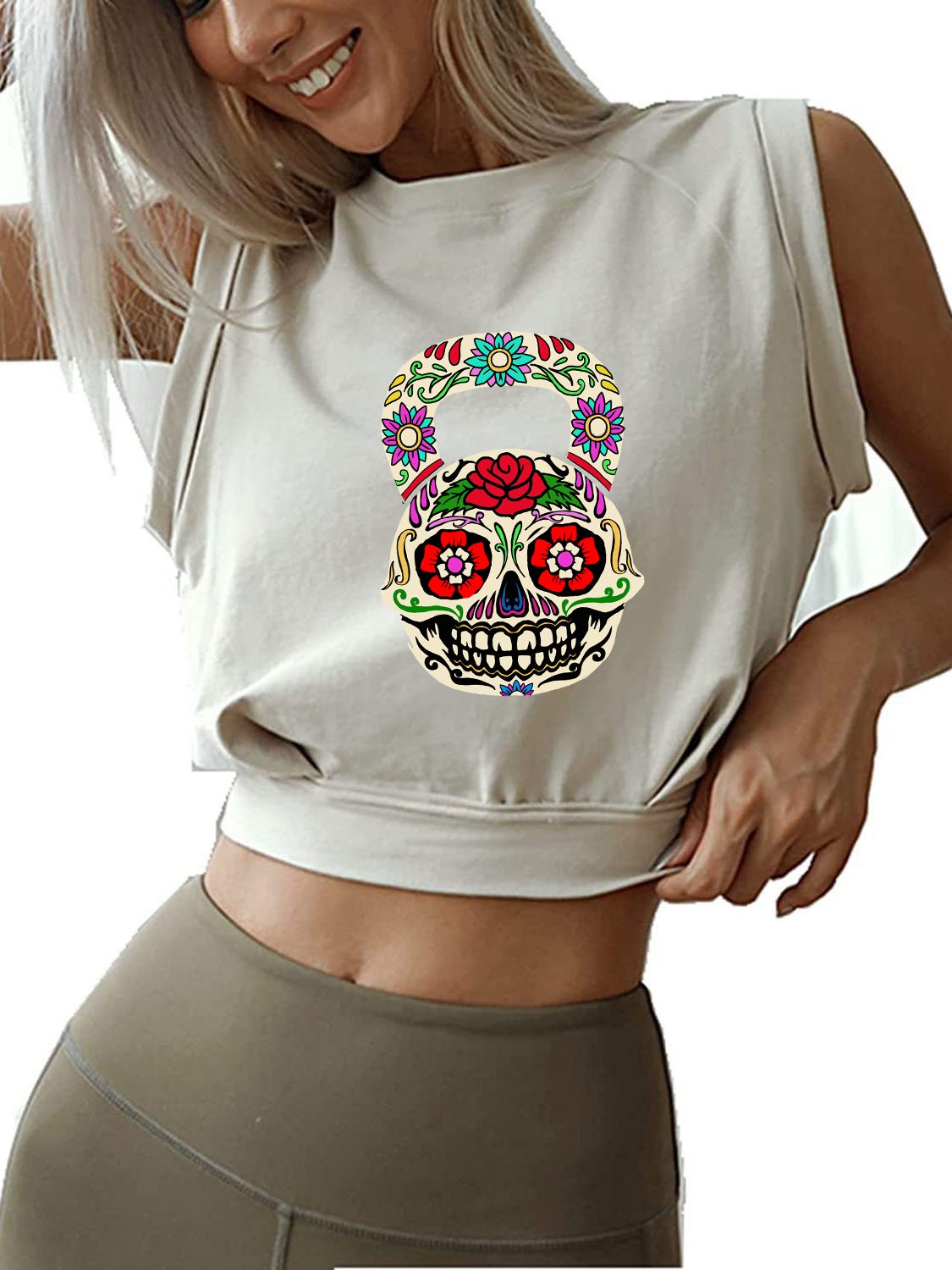 DIA DE LOS MUERTOS KETTLEBEL Sleeveless Crop Tops