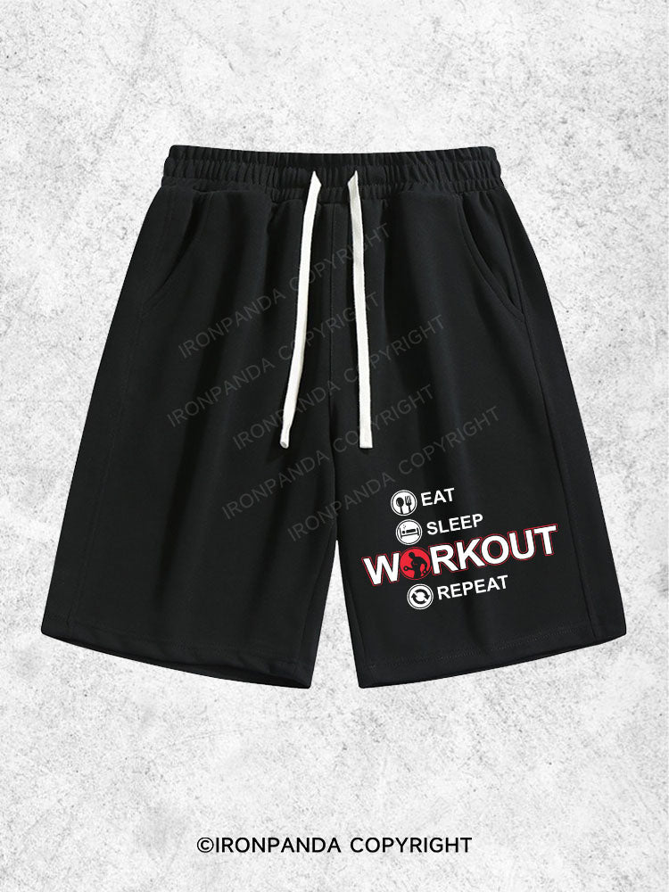 EAT SLEEP WORKOUT REPEAT Loose Cotton Gym Shorts