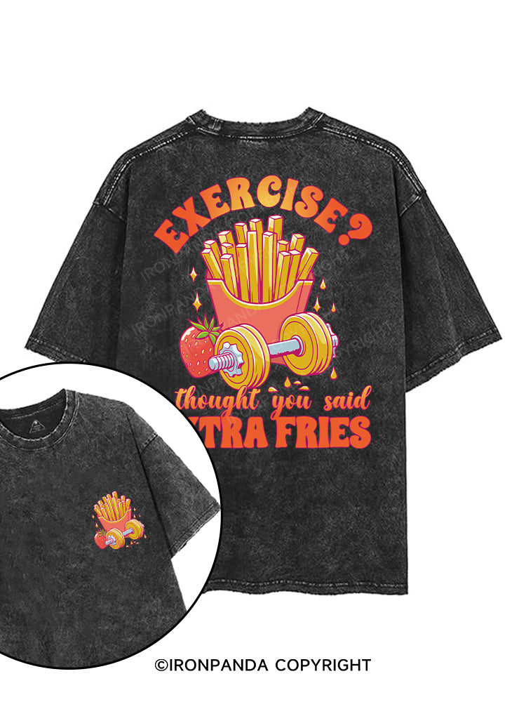 EXERCISE?I THOUGHT YOU SAID EXTRA FRIES printed Gym Shirt