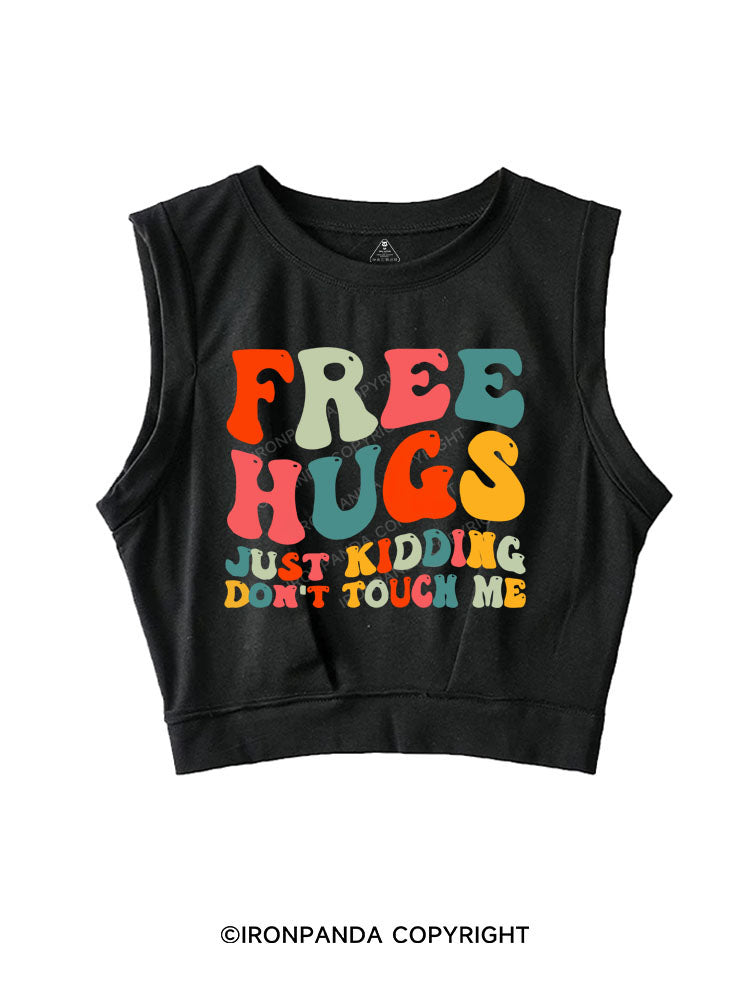 FREE HUGS JUST KIDDING DON'T TOUCH ME SLEEVELESS CROP TOPS
