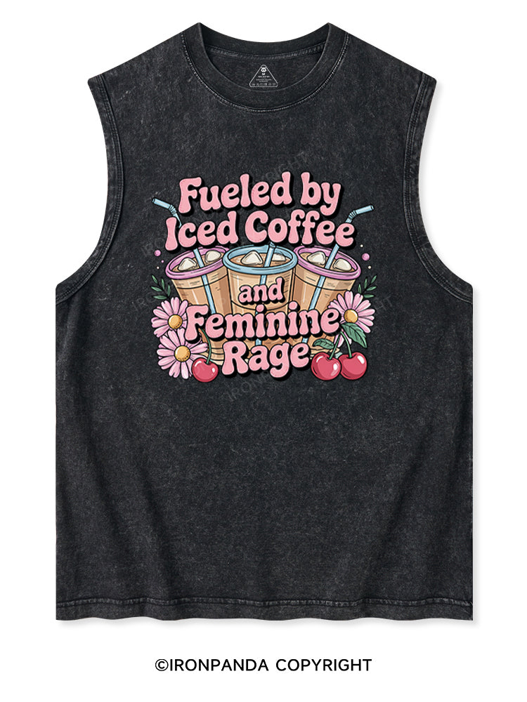 FUELED BY ICED COFFEE AND FEMININE RAGE Washed Tank