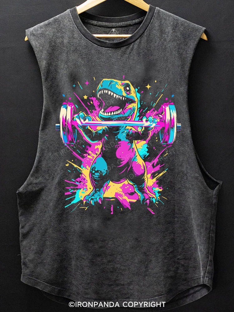 Graffiti Dinosaur Weightlifting Scoop Bottom Cotton Tank