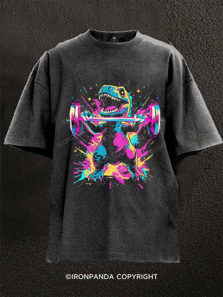 Graffiti Dinosaur Weightlifting Washed Gym Shirt