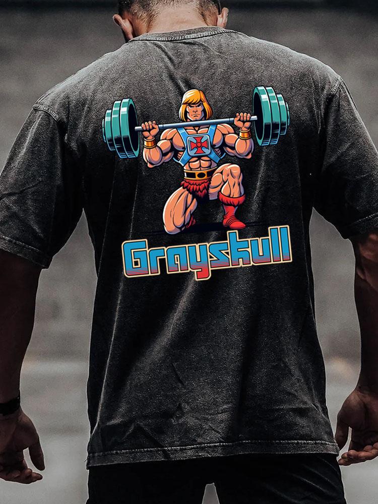 grayskull back printed Washed Gym Shirt