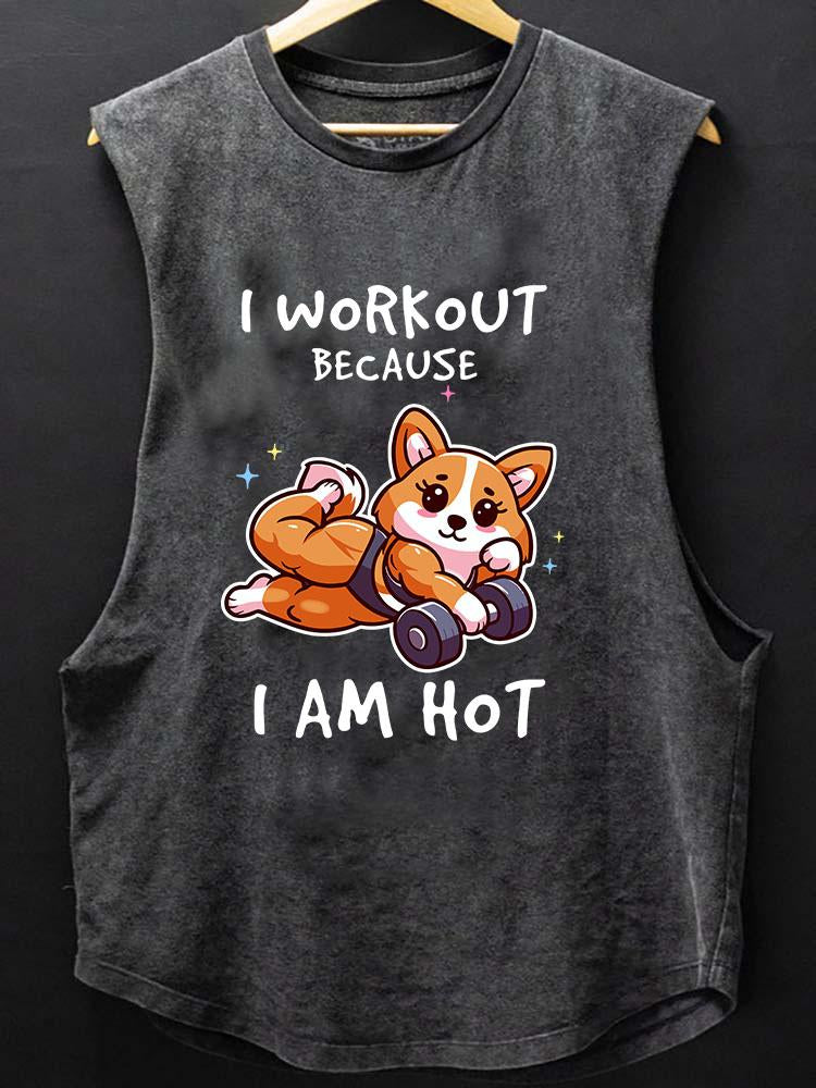 I WORK OUT BECAUSE I'M HOT SCOOP BOTTOM COTTON TANK