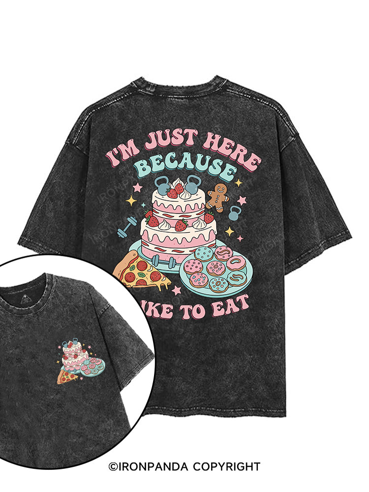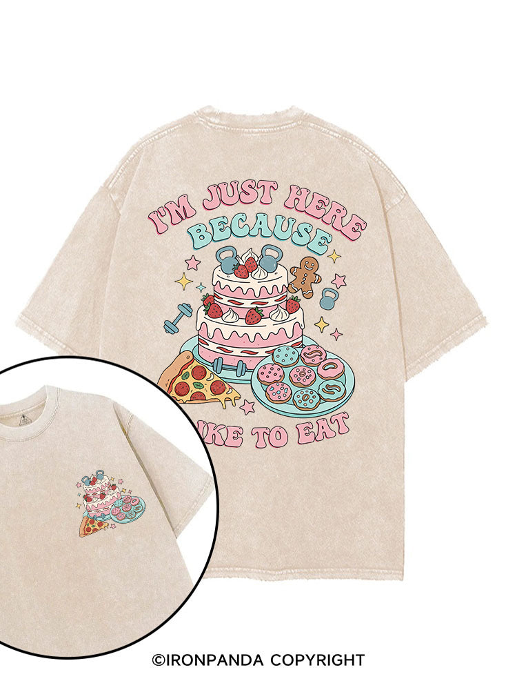 I'M JUST HERE BECAUSE I LIKE TO EAT printed Gym Shirt