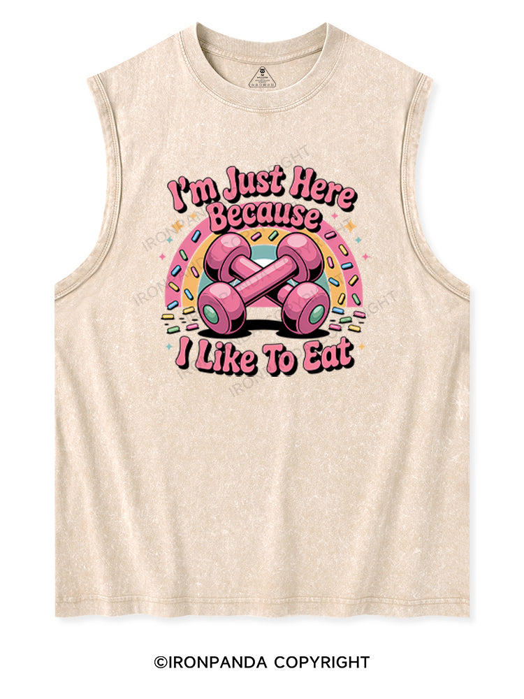 I'M JUST HERE BECAUSE I LIKE TO EAT Washed Tank