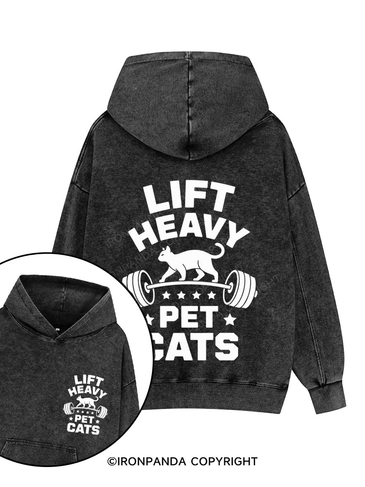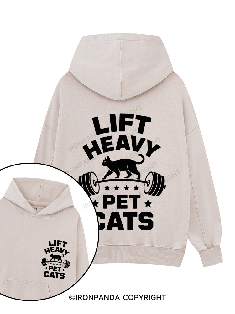 LIFT HEAVY PET CATS Printed Washed Gym Hoodie
