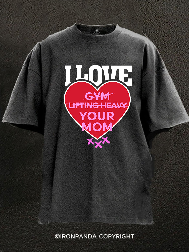 LOVE GYM LIFTING HEAVY YOUR MOM Washed Gym Shirt