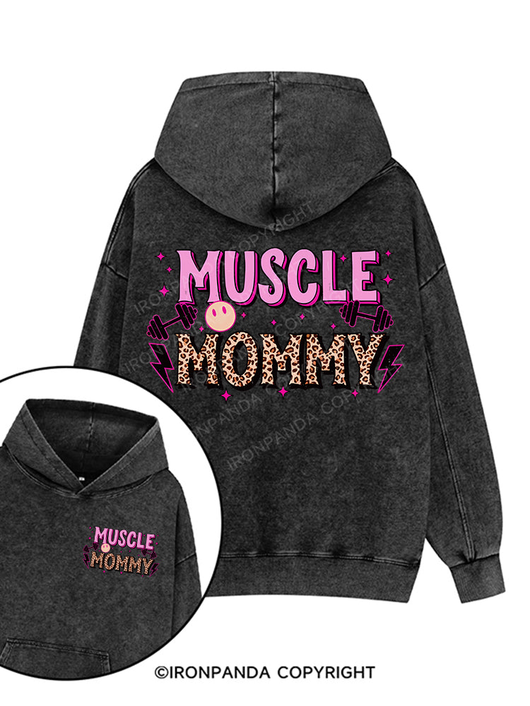 MUSCLE MOMMY Printed Washed Gym Hoodie