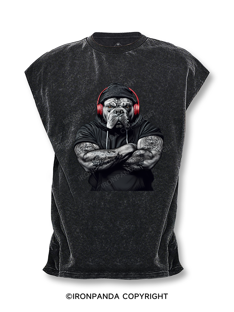 MUSCULAR BULLDOG WITH HEADPHONES Cut Off Tank