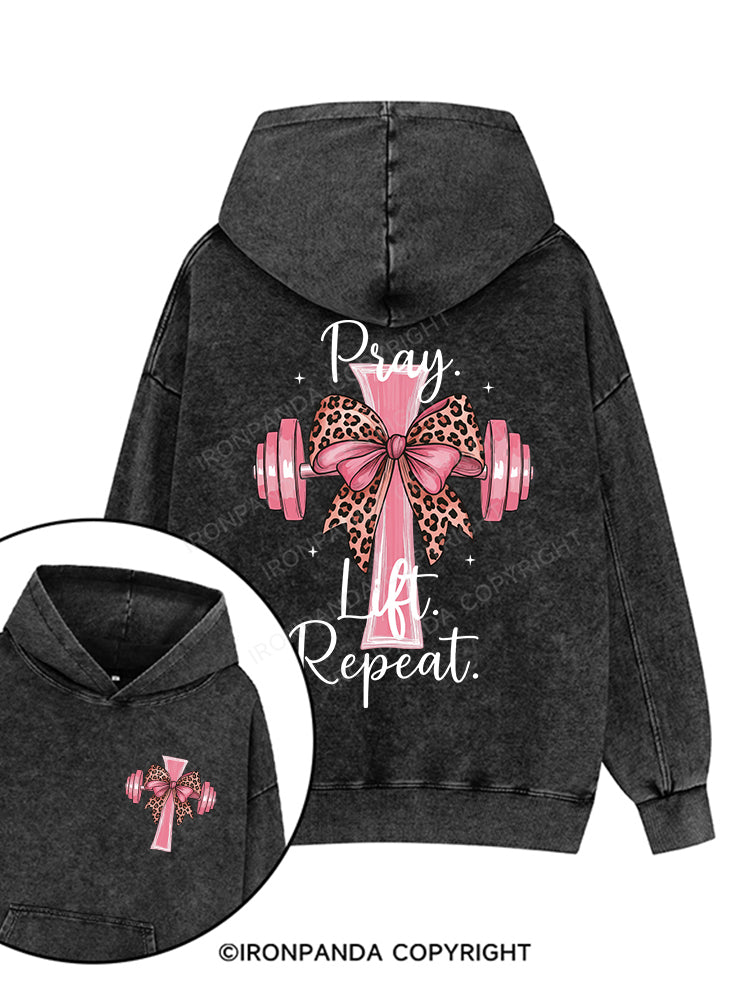 Pray. Lift. Repeat Printed Washed Gym Hoodie