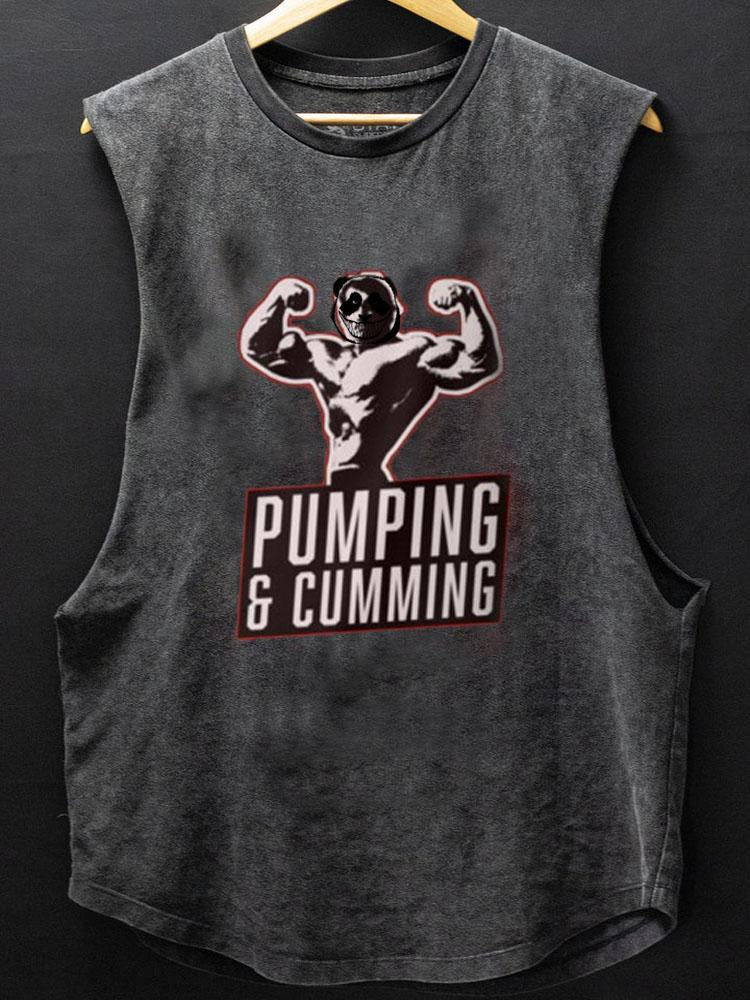 DESIGN: Sometimes the specialty of the item is within its name. Introducing Pumping Are Cumming Scoop Bottom Cotton IronPanda Tank. Cut deeper on the shoulders to showcase the delts from all angles. They are made with soft cotton and stretchy lycra fabric, straight bottom hem cut, Pumping Are Cumming letters printed on the chest.