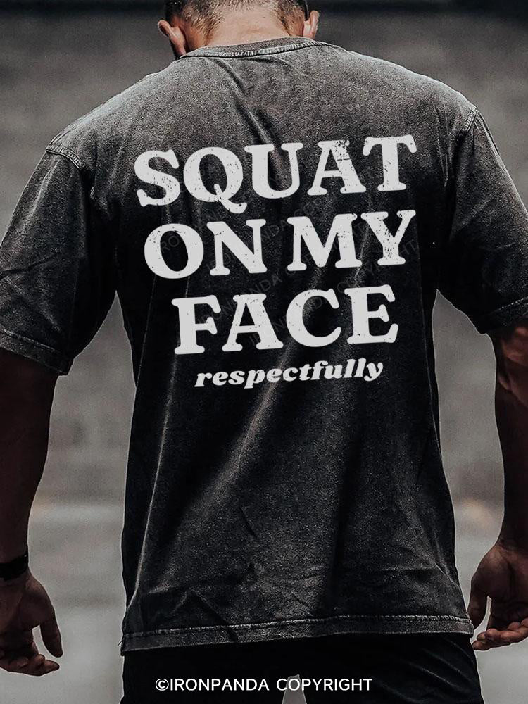 squat on my face respectfully back printed Washed Gym Shirt