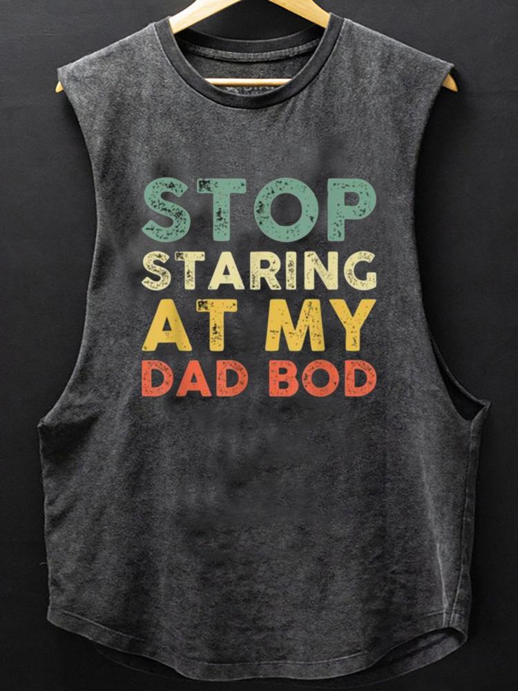 STOP STARING AT MY DAD BOD SCOOP BOTTOM COTTON TANK