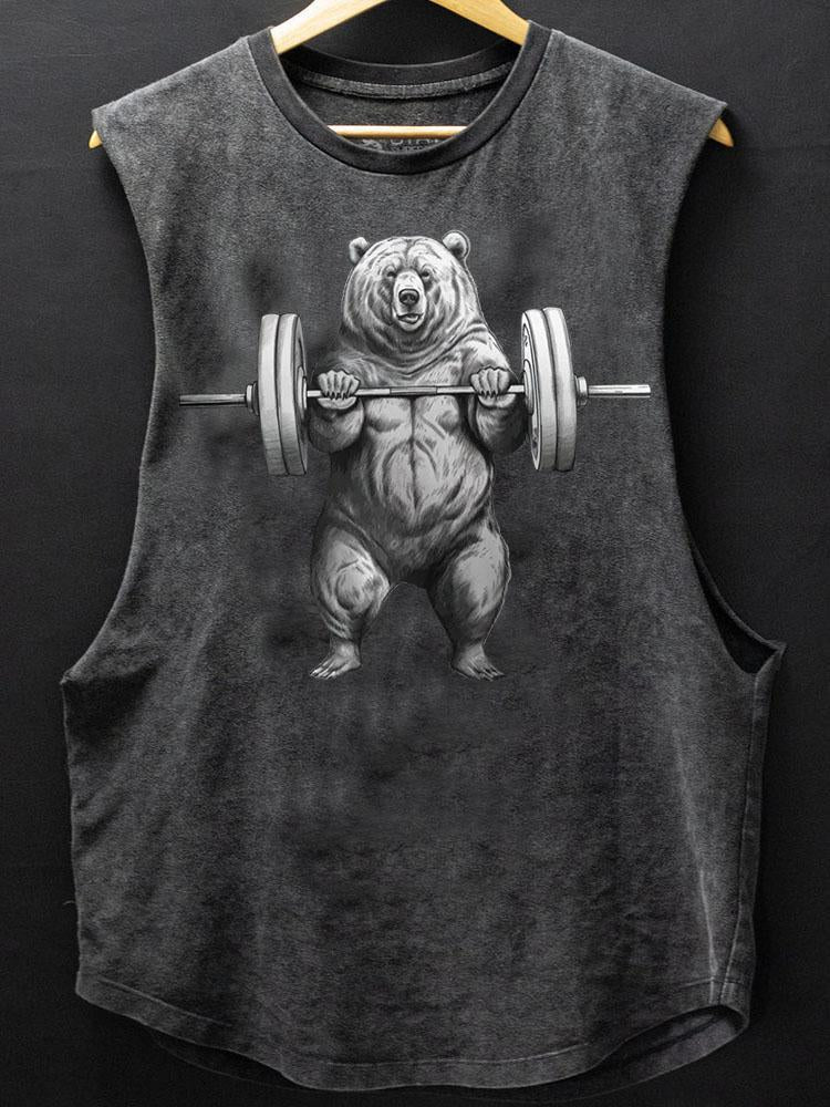 DESIGN: Sometimes the specialty of the item is within its name. Introducing Weightlifting Bear Scoop Bottom Cotton IronPanda Tank. Cut deeper on the shoulders to showcase the delts from all angles. They are made with soft cotton and stretchy lycra fabric, straight bottom hem cut, Weightlifting Bear printed on the chest.