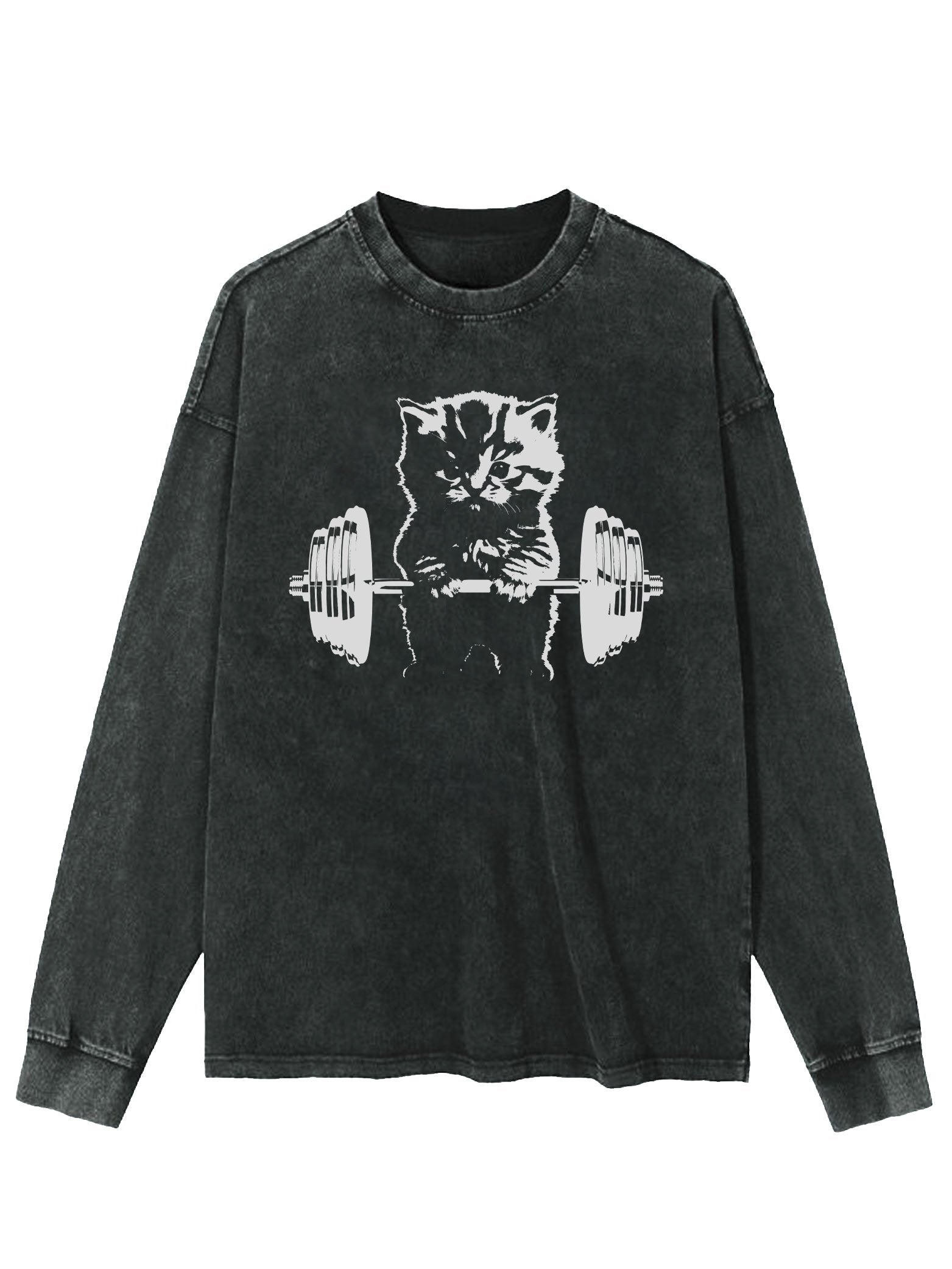 WEIGHTLIFTING CAT WASHED LONG SLEEVE SHIRT