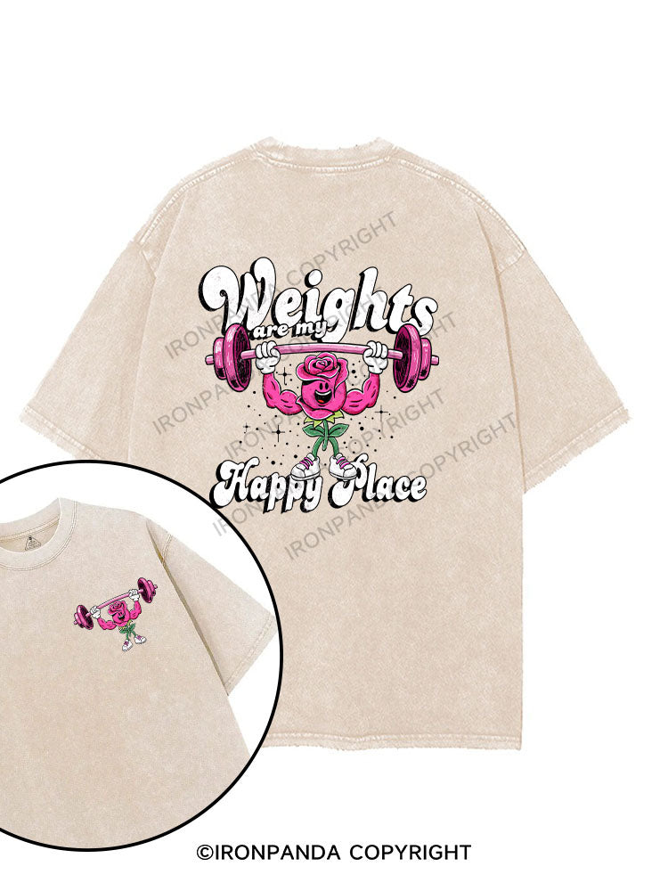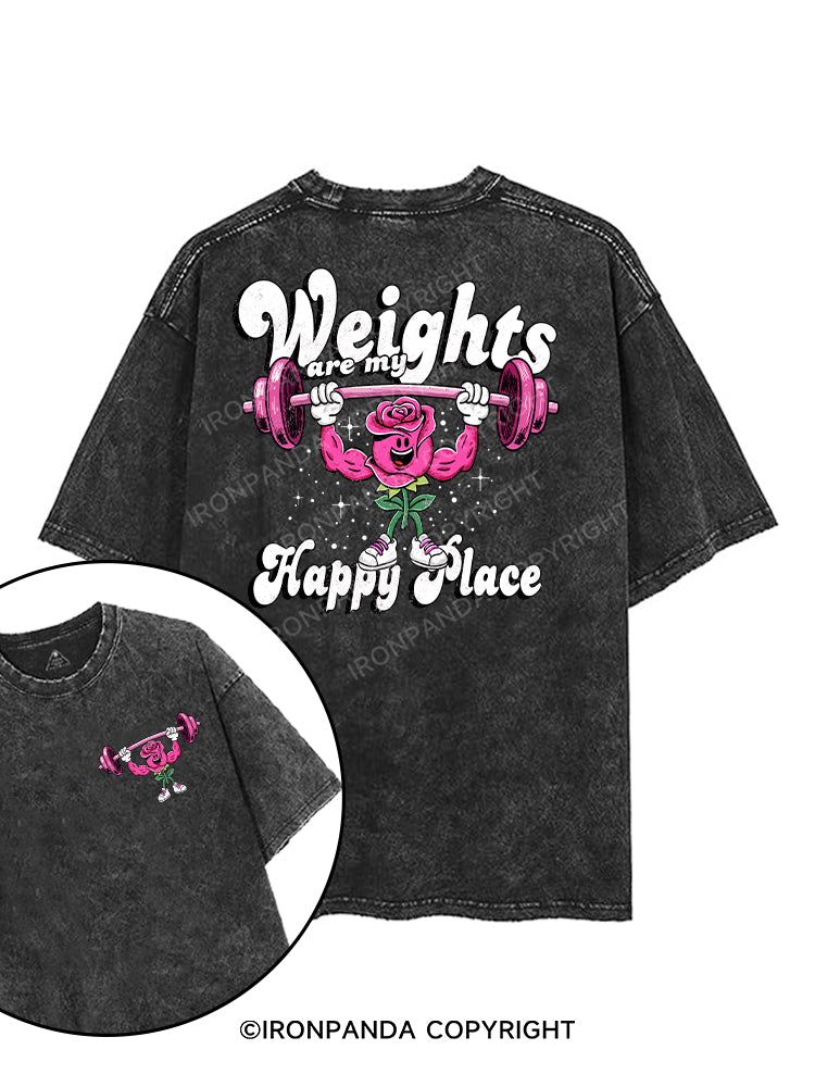 WEIGHTS ARE MY HAPPY PLACE printed Gym Shirt