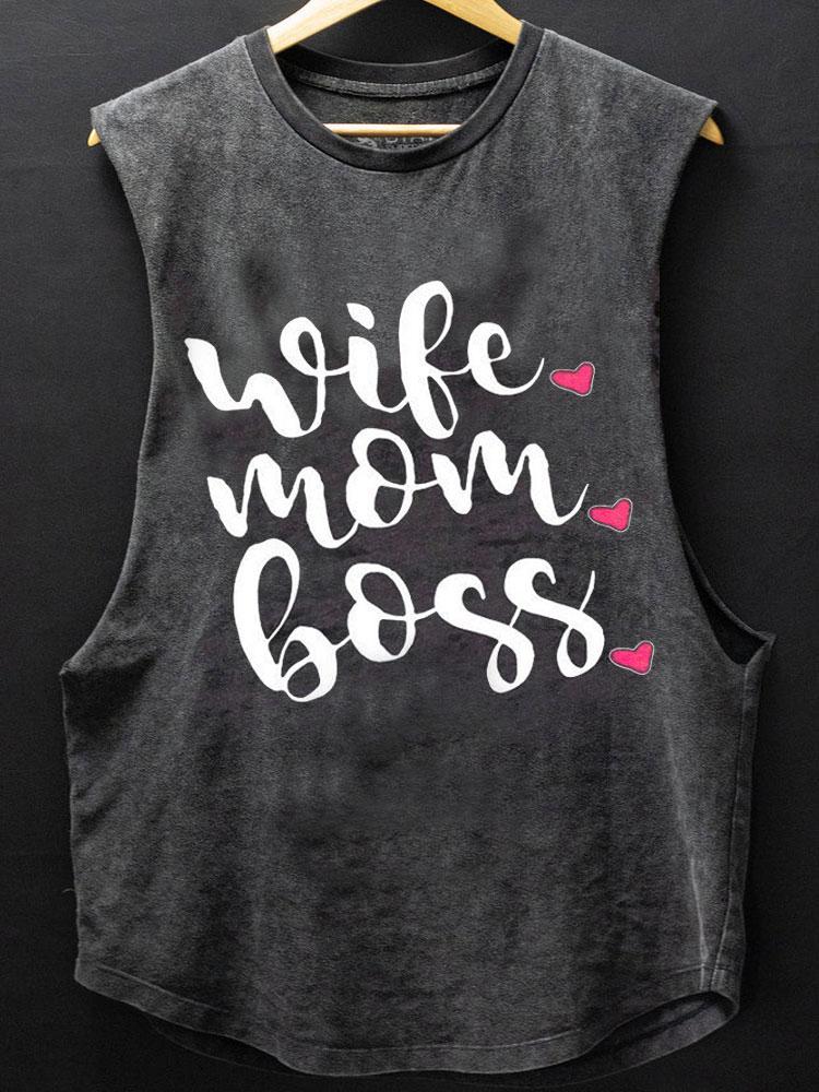 Wife Mom Boss Workout Scoop Bottom Cotton Tank