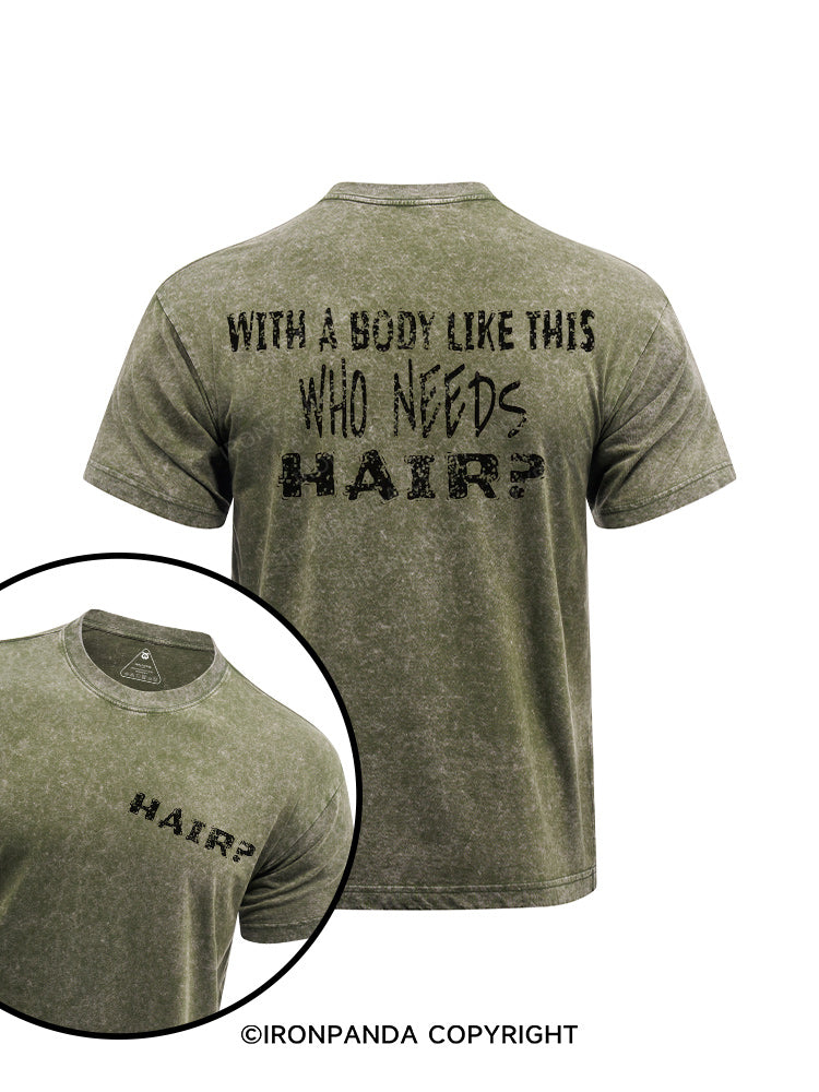 With a Body Like This Who Needs Hair printed Washed Gym Shirt