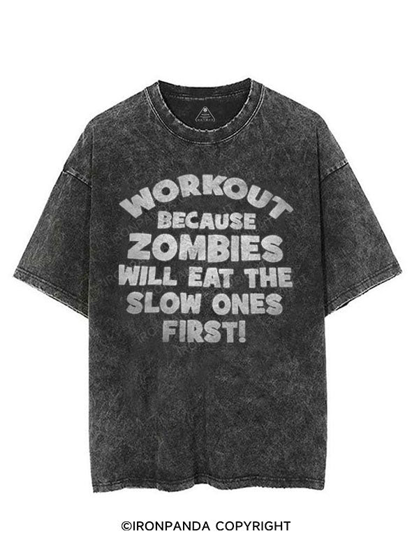 WORKOUT BECAUSE ZOMBIES WILL EAT THE SLOW ONES FIRST VINTAGE GYM SHIRT