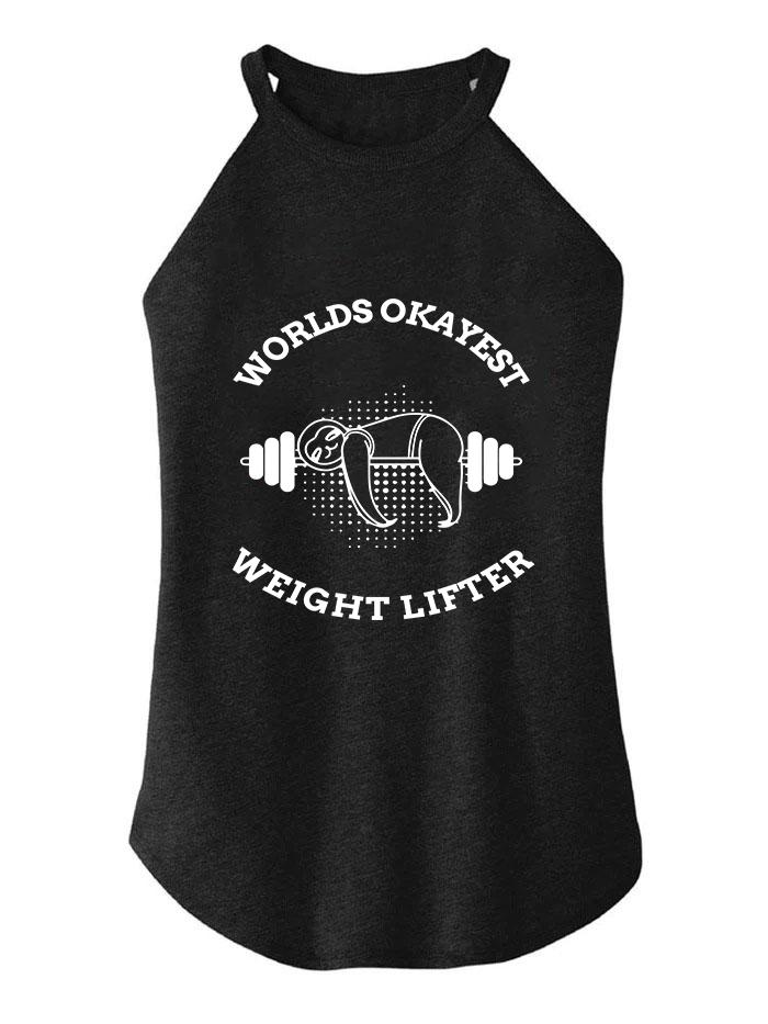WORLDS OKAYEST WEIGHT LIFTER TRI ROCKER COTTON TANK