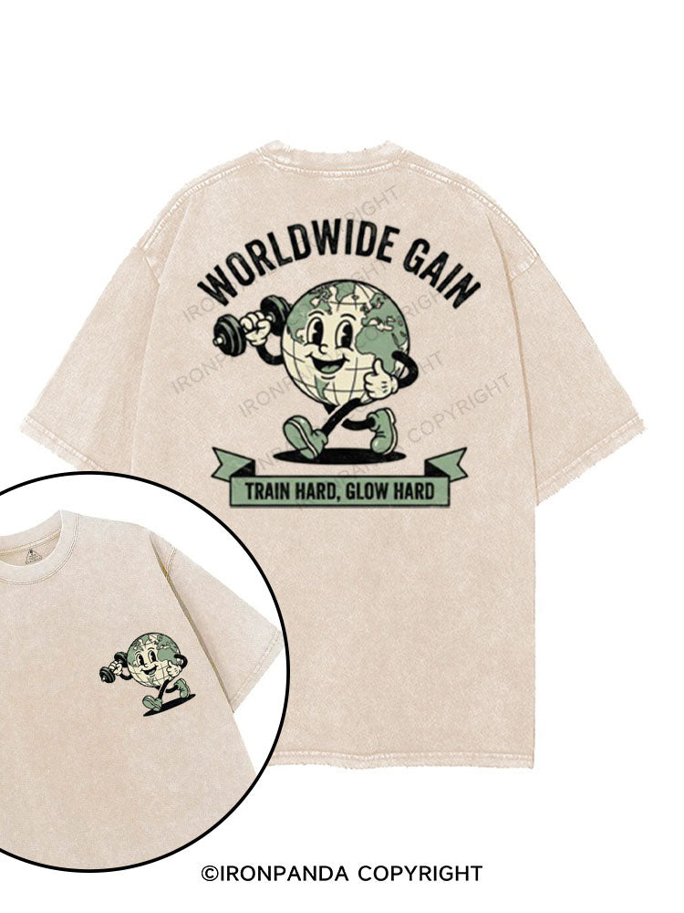 WORLDWIDE GAIN TRAIN HARD GLOW HARD printed Gym Shirt
